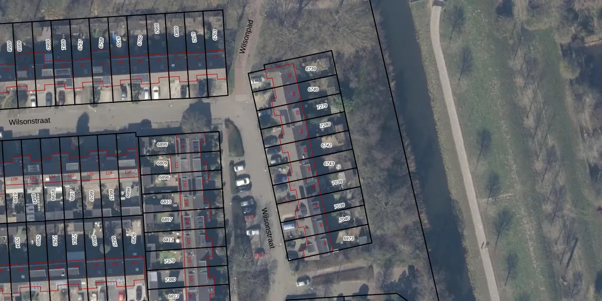 Het perceel waarop Wilsonstraat 86 staat heeft een oppervlakte van 182 m². Dit is een middelgroot perceel. De perceeloppervlakte wordt geregistreerd door het Kadaster. Gedetailleerde informatie over de maten van dit perceel kunt u vinden in het rapport Kadastrale kaart met maatvoering van Wilsonstraat 86.
