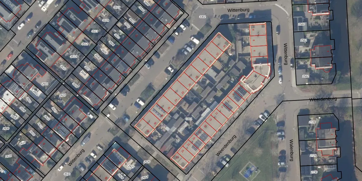 Het perceel waarop Wittenburg 22 staat heeft een oppervlakte van 3495 m². Dit is een zeer groot perceel. De perceeloppervlakte wordt geregistreerd door het Kadaster. Gedetailleerde informatie over de maten van dit perceel kunt u vinden in het rapport Kadastrale kaart met maatvoering van Wittenburg 22.