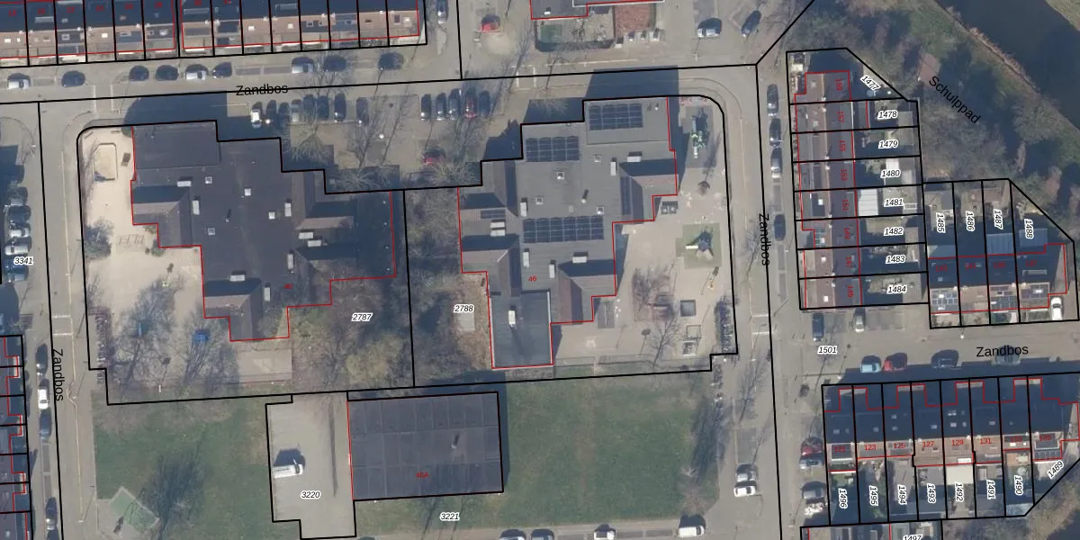 Het perceel waarop Zandbos 46 staat heeft een oppervlakte van 2738 m². Dit is een zeer groot perceel. De perceeloppervlakte wordt geregistreerd door het Kadaster. Gedetailleerde informatie over de maten van dit perceel kunt u vinden in het rapport Kadastrale kaart met maatvoering van Zandbos 46.