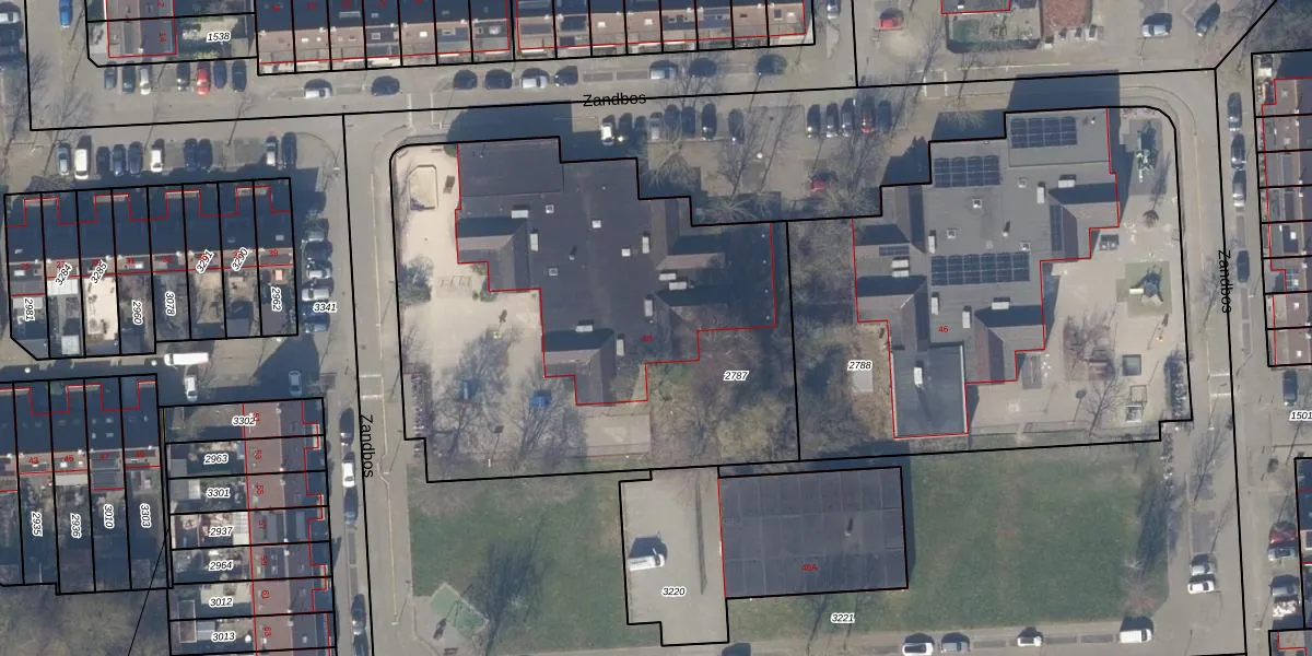 Het perceel waarop Zandbos 48 staat heeft een oppervlakte van 2740 m². Dit is een zeer groot perceel. De perceeloppervlakte wordt geregistreerd door het Kadaster. Gedetailleerde informatie over de maten van dit perceel kunt u vinden in het rapport Kadastrale kaart met maatvoering van Zandbos 48.