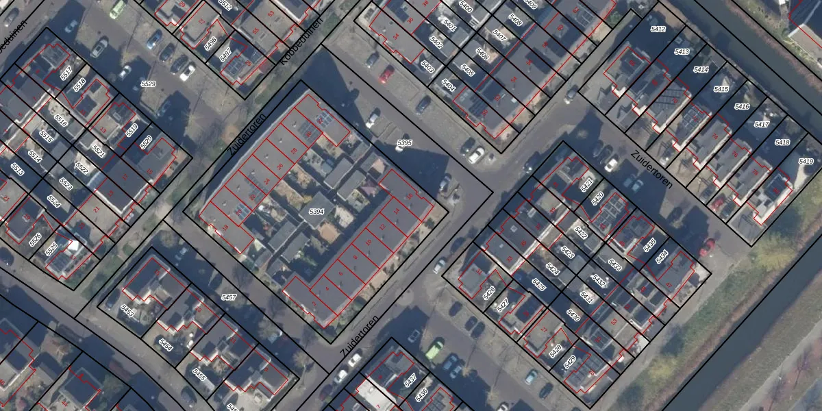 Het perceel waarop Zuidertoren 16 staat heeft een oppervlakte van 2074 m². Dit is een zeer groot perceel. De perceeloppervlakte wordt geregistreerd door het Kadaster. Gedetailleerde informatie over de maten van dit perceel kunt u vinden in het rapport Kadastrale kaart met maatvoering van Zuidertoren 16.