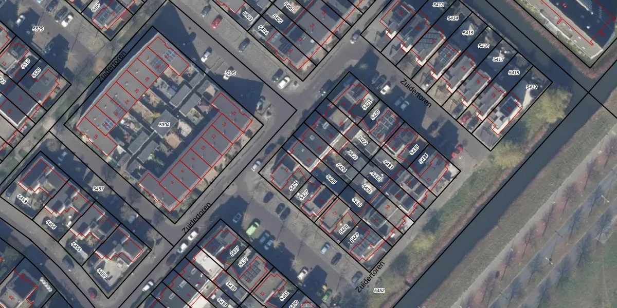 Het perceel waarop Zuidertoren 33 staat heeft een oppervlakte van 131 m². Dit is een middelgroot perceel. De perceeloppervlakte wordt geregistreerd door het Kadaster. Gedetailleerde informatie over de maten van dit perceel kunt u vinden in het rapport Kadastrale kaart met maatvoering van Zuidertoren 33.
