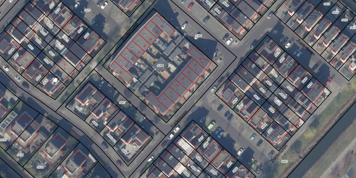 Het perceel waarop Zuidertoren 8 staat heeft een oppervlakte van 2074 m². Dit is een zeer groot perceel. De perceeloppervlakte wordt geregistreerd door het Kadaster. Gedetailleerde informatie over de maten van dit perceel kunt u vinden in het rapport Kadastrale kaart met maatvoering van Zuidertoren 8.
