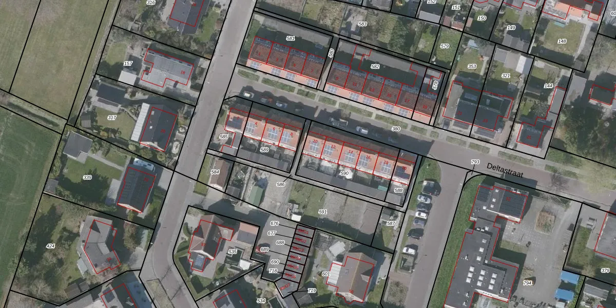 Deltastraat 10 is gelegen op kadastraal perceel OBG00EH590. Deze kadastrale aanduiding is uniek en wordt gebruikt door het Kadaster om eigendomsrechten en andere zakelijke rechten vast te leggen. Het perceel maakt onderdeel uit van de kadastrale gemeente Oostburg.