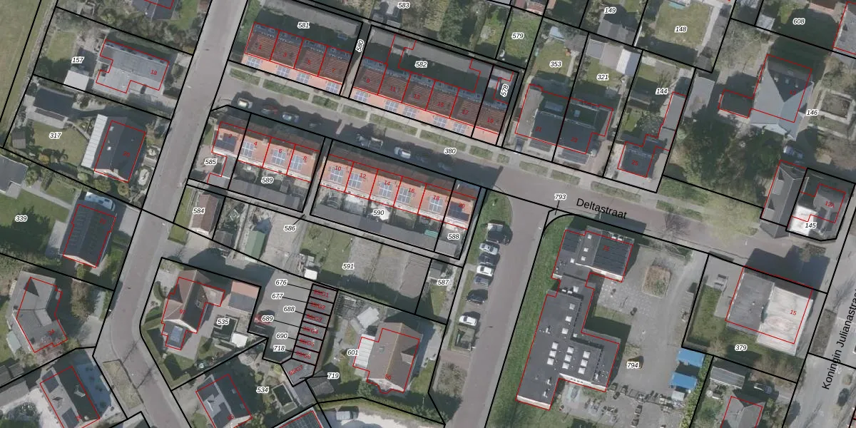 Het perceel waarop Deltastraat 18 staat heeft een oppervlakte van 546 m². Dit is een groot perceel. De perceeloppervlakte wordt geregistreerd door het Kadaster. Gedetailleerde informatie over de maten van dit perceel kunt u vinden in het rapport Kadastrale kaart met maatvoering van Deltastraat 18.