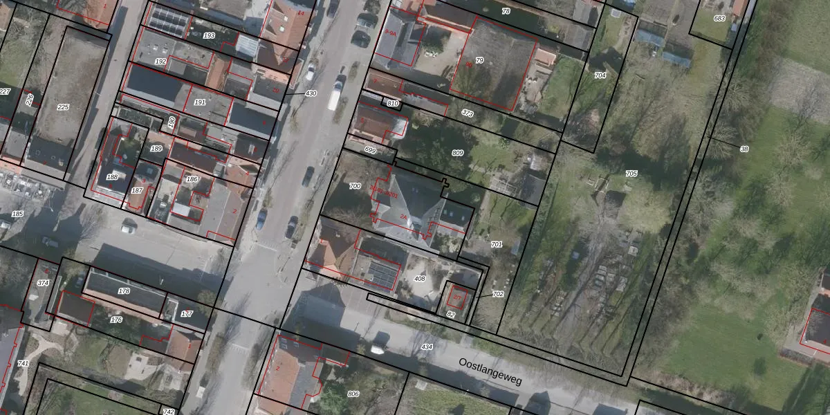 Het adres is gelegen op perceel 700 in de sectie EH en de kadastrale gemeente Oostburg. De kadastrale aanduiding is aldus OBG00-EH-700. Het perceel is kleiner dan gemiddeld in Oostburg. Het perceel is 564 m² groot, terwijl het gemiddelde ligt op 8655,85 m². Het grootste perceel in de kadastrale gemeente is 11,10 km². Het kleinste perceel heeft een oppervlakte van 0 m². Op het perceel zijn 3 adressen aanwezig. De laatste wijziging in het de Basisregistratie Kadaster (BRK) was op 19-10-2007.