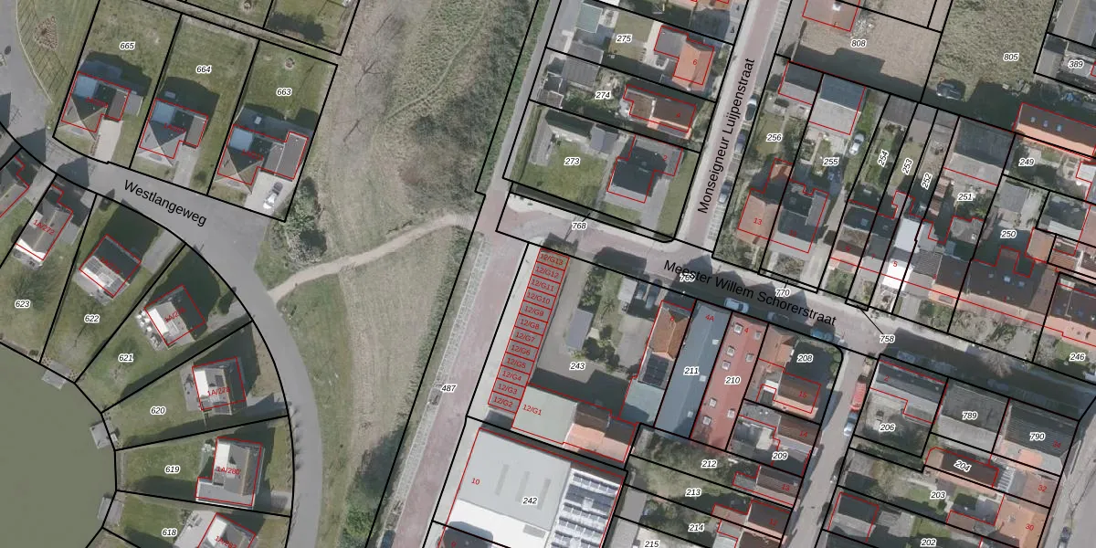 Molenweg 12-G12 is gelegen op kadastraal perceel OBG00EH243. Deze kadastrale aanduiding is uniek en wordt gebruikt door het Kadaster om eigendomsrechten en andere zakelijke rechten vast te leggen. Het perceel maakt onderdeel uit van de kadastrale gemeente Oostburg.