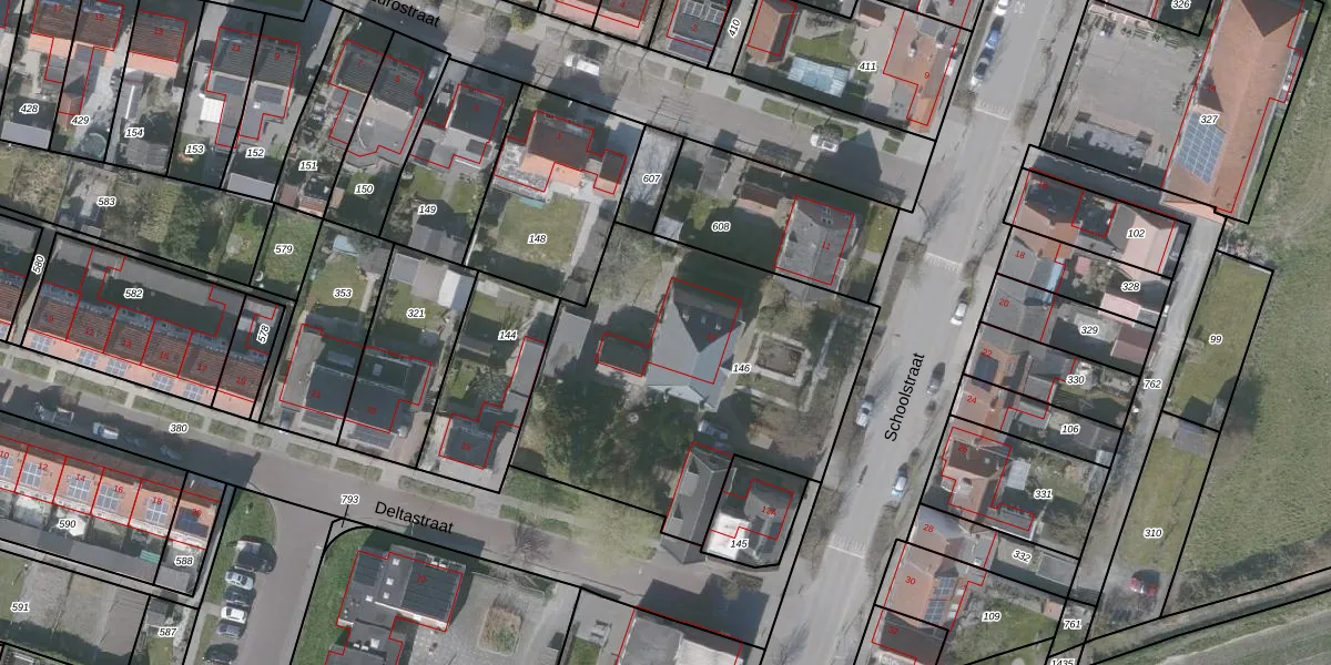 Het perceel waarop Schoolstraat 13 staat heeft een oppervlakte van 1622 m². Dit is een zeer groot perceel. De perceeloppervlakte wordt geregistreerd door het Kadaster. Gedetailleerde informatie over de maten van dit perceel kunt u vinden in het rapport Kadastrale kaart met maatvoering van Schoolstraat 13.