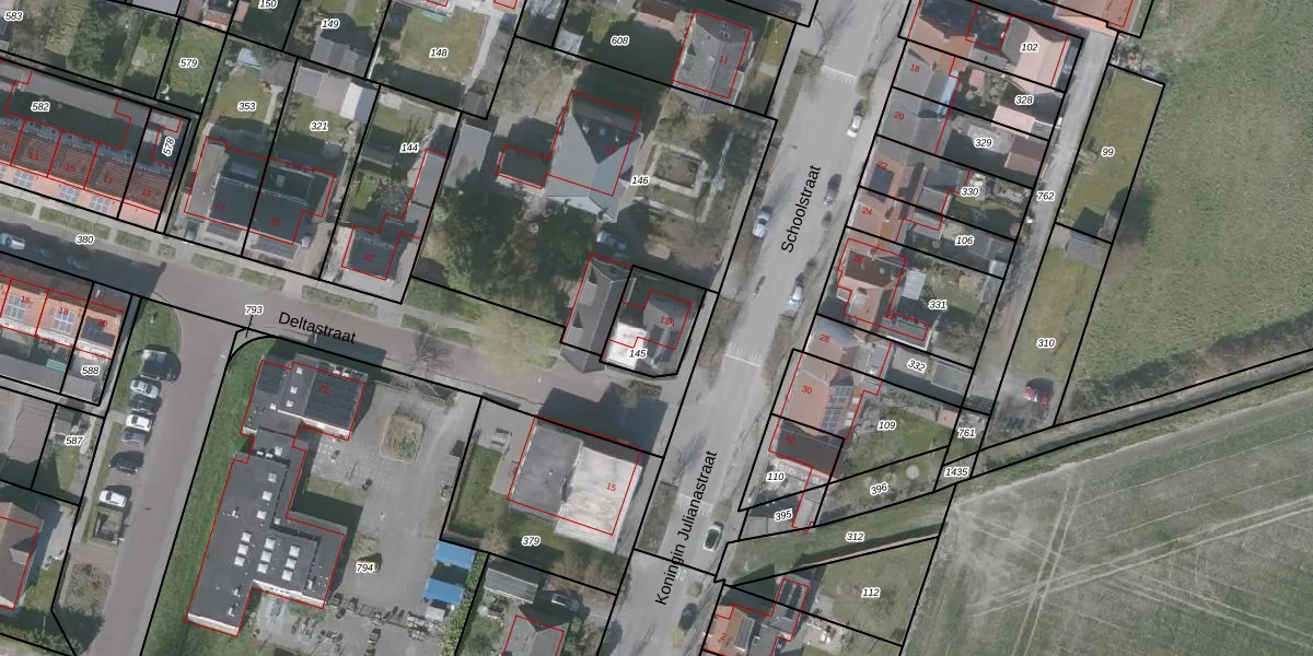 Het perceel waarop Schoolstraat 13-A staat heeft een oppervlakte van 175 m². Dit is een middelgroot perceel. De perceeloppervlakte wordt geregistreerd door het Kadaster. Gedetailleerde informatie over de maten van dit perceel kunt u vinden in het rapport Kadastrale kaart met maatvoering van Schoolstraat 13-A.