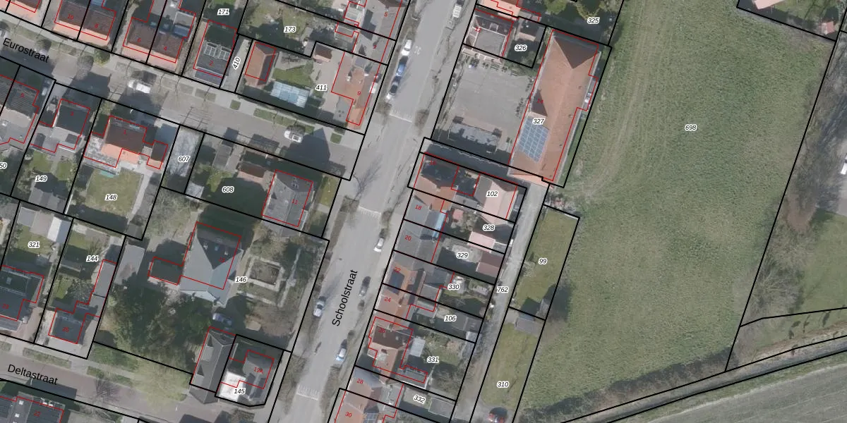 Schoolstraat 18 is gelegen op kadastraal perceel OBG00EH328. Deze kadastrale aanduiding is uniek en wordt gebruikt door het Kadaster om eigendomsrechten en andere zakelijke rechten vast te leggen. Het perceel maakt onderdeel uit van de kadastrale gemeente Oostburg.