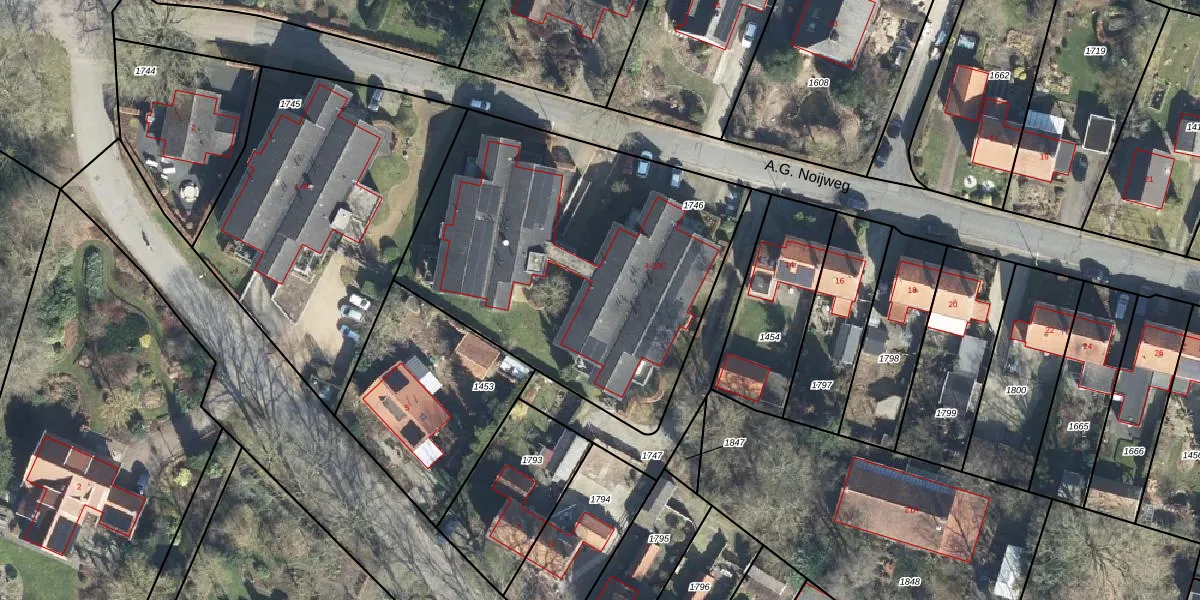 Het perceel waarop A.G. Noijweg 8-C staat heeft een oppervlakte van 1890 m². Dit is een zeer groot perceel. De perceeloppervlakte wordt geregistreerd door het Kadaster. Gedetailleerde informatie over de maten van dit perceel kunt u vinden in het rapport Kadastrale kaart met maatvoering van A.G. Noijweg 8-C.
