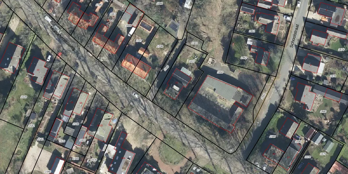 Het perceel waarop Monumentenweg 23 staat heeft een oppervlakte van 615 m². Dit is een groot perceel. De perceeloppervlakte wordt geregistreerd door het Kadaster. Gedetailleerde informatie over de maten van dit perceel kunt u vinden in het rapport Kadastrale kaart met maatvoering van Monumentenweg 23.