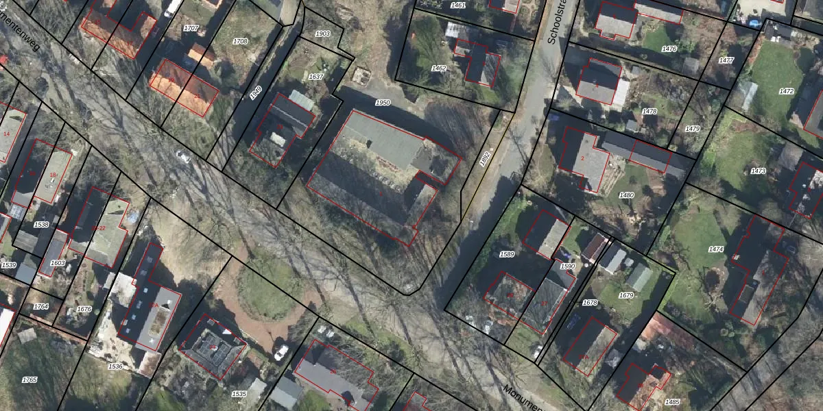Het perceel waarop Schoolstraat 1-A staat heeft een oppervlakte van 2762 m². Dit is een zeer groot perceel. De perceeloppervlakte wordt geregistreerd door het Kadaster. Gedetailleerde informatie over de maten van dit perceel kunt u vinden in het rapport Kadastrale kaart met maatvoering van Schoolstraat 1-A.