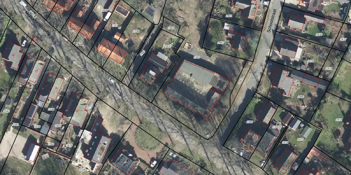 Het perceel waarop Schoolstraat 1-J staat heeft een oppervlakte van 2762 m². Dit is een zeer groot perceel. De perceeloppervlakte wordt geregistreerd door het Kadaster. Gedetailleerde informatie over de maten van dit perceel kunt u vinden in het rapport Kadastrale kaart met maatvoering van Schoolstraat 1-J.
