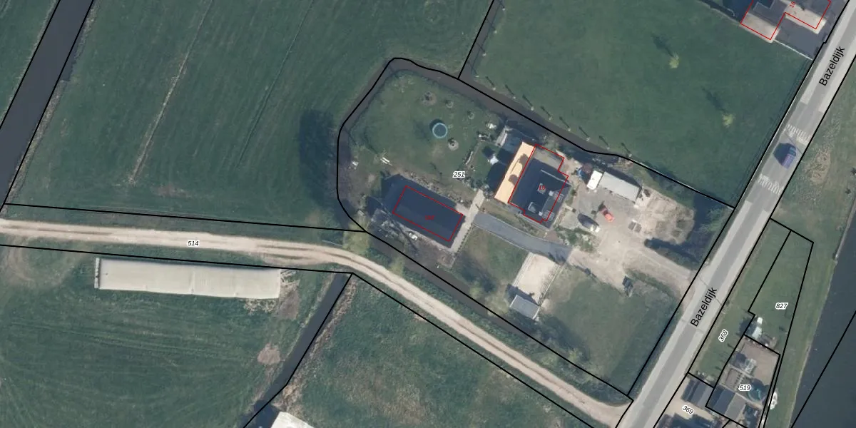 Het perceel waarop Bazeldijk 15-Z staat heeft een oppervlakte van 3775 m². Dit is een zeer groot perceel. De perceeloppervlakte wordt geregistreerd door het Kadaster. Gedetailleerde informatie over de maten van dit perceel kunt u vinden in het rapport Kadastrale kaart met maatvoering van Bazeldijk 15-Z.