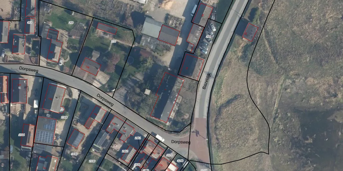 Het perceel waarop Bazeldijk 2 staat heeft een oppervlakte van 6640 m². Dit is een zeer groot perceel. De perceeloppervlakte wordt geregistreerd door het Kadaster. Gedetailleerde informatie over de maten van dit perceel kunt u vinden in het rapport Kadastrale kaart met maatvoering van Bazeldijk 2.