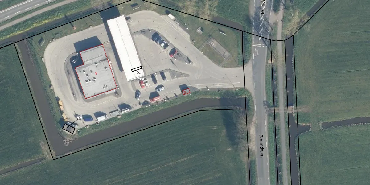 Het perceel waarop Beemdweg 4-D staat heeft een oppervlakte van 7141 m². Dit is een zeer groot perceel. De perceeloppervlakte wordt geregistreerd door het Kadaster. Gedetailleerde informatie over de maten van dit perceel kunt u vinden in het rapport Kadastrale kaart met maatvoering van Beemdweg 4-D.