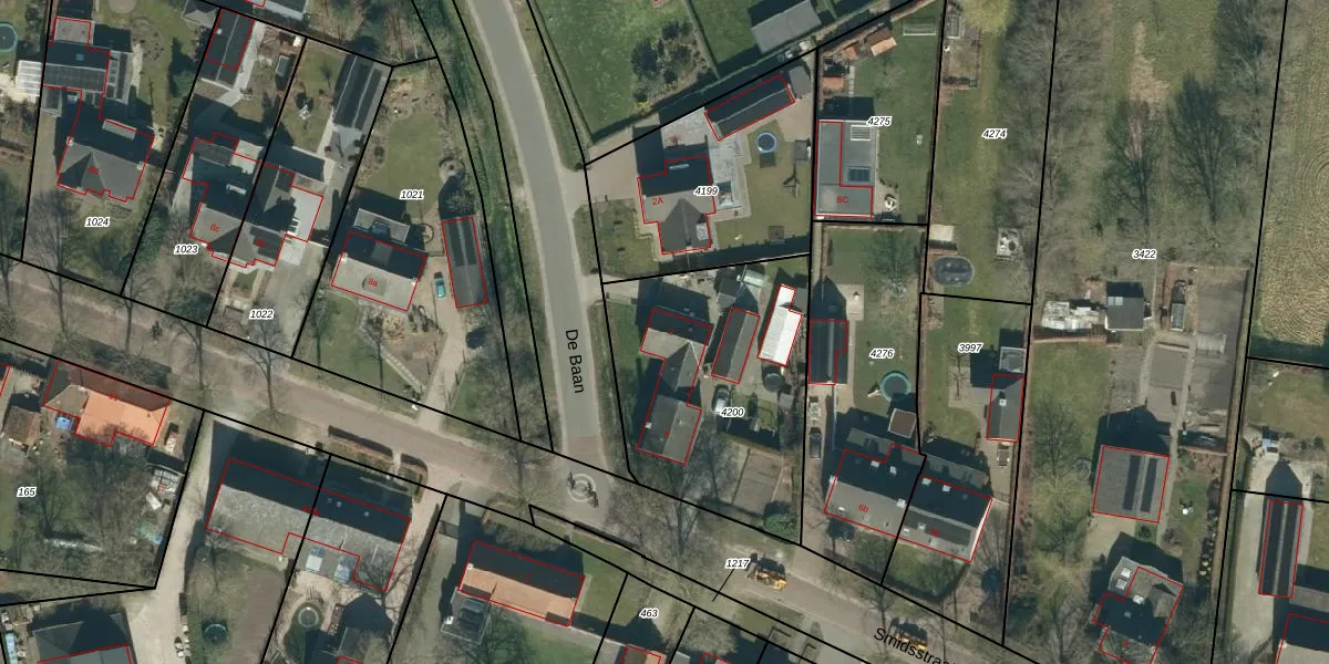 Het perceel waarop De Baan 2 staat heeft een oppervlakte van 1052 m². Dit is een zeer groot perceel. De perceeloppervlakte wordt geregistreerd door het Kadaster. Gedetailleerde informatie over de maten van dit perceel kunt u vinden in het rapport Kadastrale kaart met maatvoering van De Baan 2.