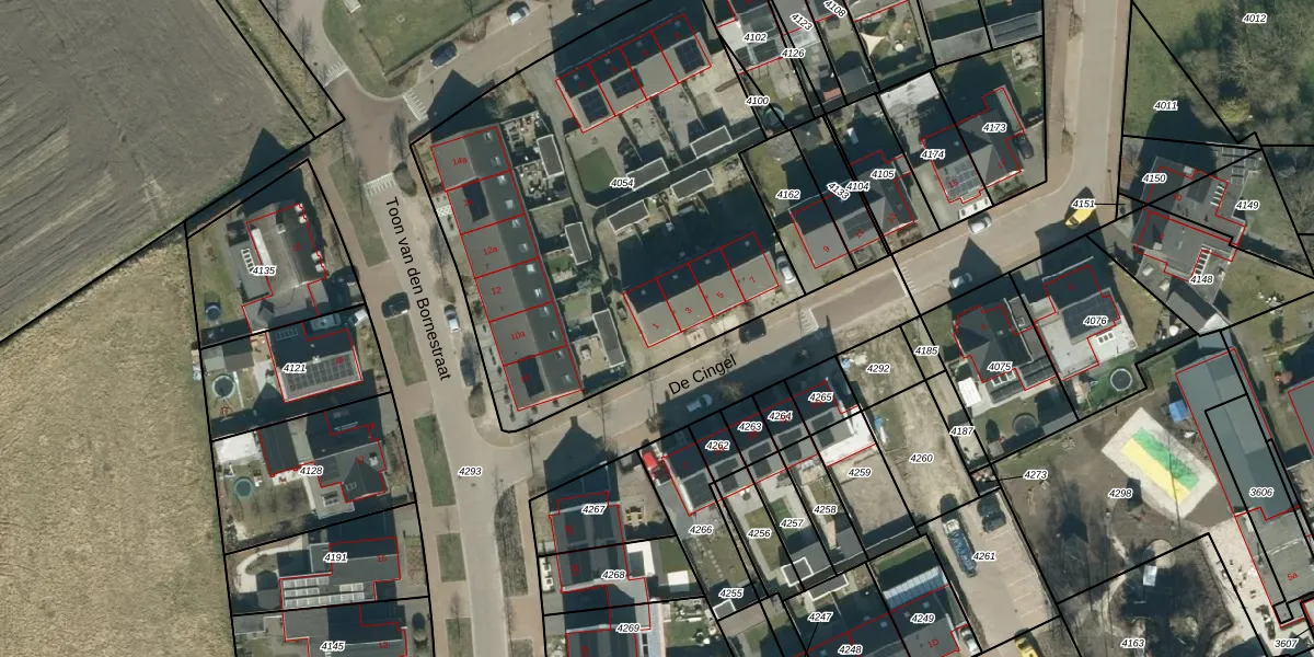 Het perceel waarop De Cingel 1 staat heeft een oppervlakte van 2447 m². Dit is een zeer groot perceel. De perceeloppervlakte wordt geregistreerd door het Kadaster. Gedetailleerde informatie over de maten van dit perceel kunt u vinden in het rapport Kadastrale kaart met maatvoering van De Cingel 1.