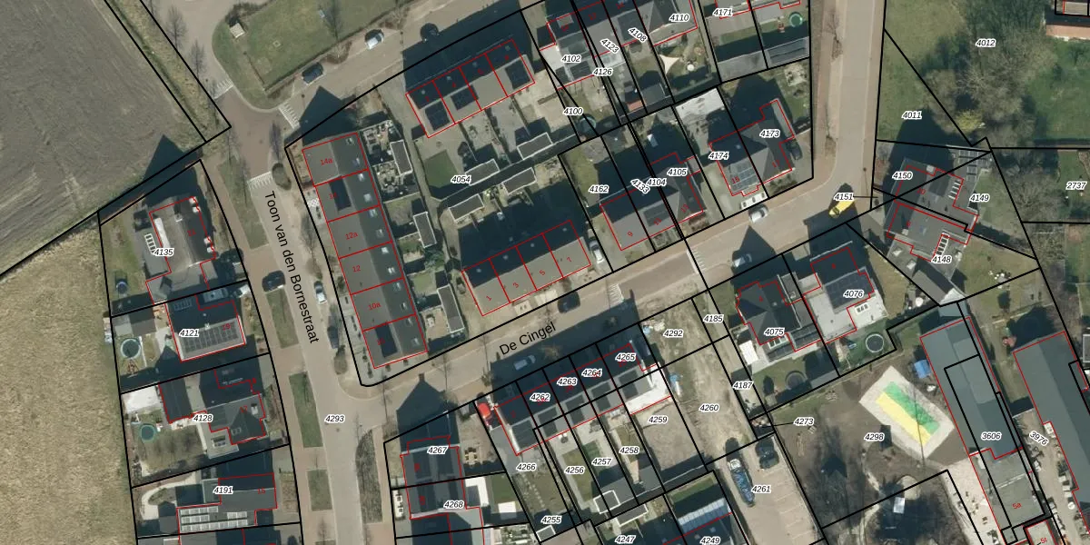Het perceel waarop De Cingel 5 staat heeft een oppervlakte van 2447 m². Dit is een zeer groot perceel. De perceeloppervlakte wordt geregistreerd door het Kadaster. Gedetailleerde informatie over de maten van dit perceel kunt u vinden in het rapport Kadastrale kaart met maatvoering van De Cingel 5.