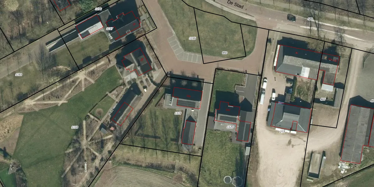 Het perceel waarop De Stad 18-b staat heeft een oppervlakte van 1370 m². Dit is een zeer groot perceel. De perceeloppervlakte wordt geregistreerd door het Kadaster. Gedetailleerde informatie over de maten van dit perceel kunt u vinden in het rapport Kadastrale kaart met maatvoering van De Stad 18-b.