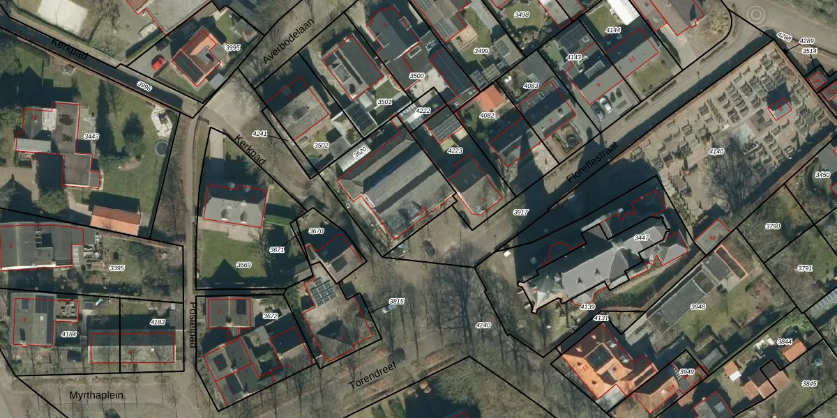 Floreffestraat 1 is gelegen op kadastraal perceel MDE02E3620. Deze kadastrale aanduiding is uniek en wordt gebruikt door het Kadaster om eigendomsrechten en andere zakelijke rechten vast te leggen. Het perceel maakt onderdeel uit van de kadastrale gemeente Hooge en Lage Mierde.