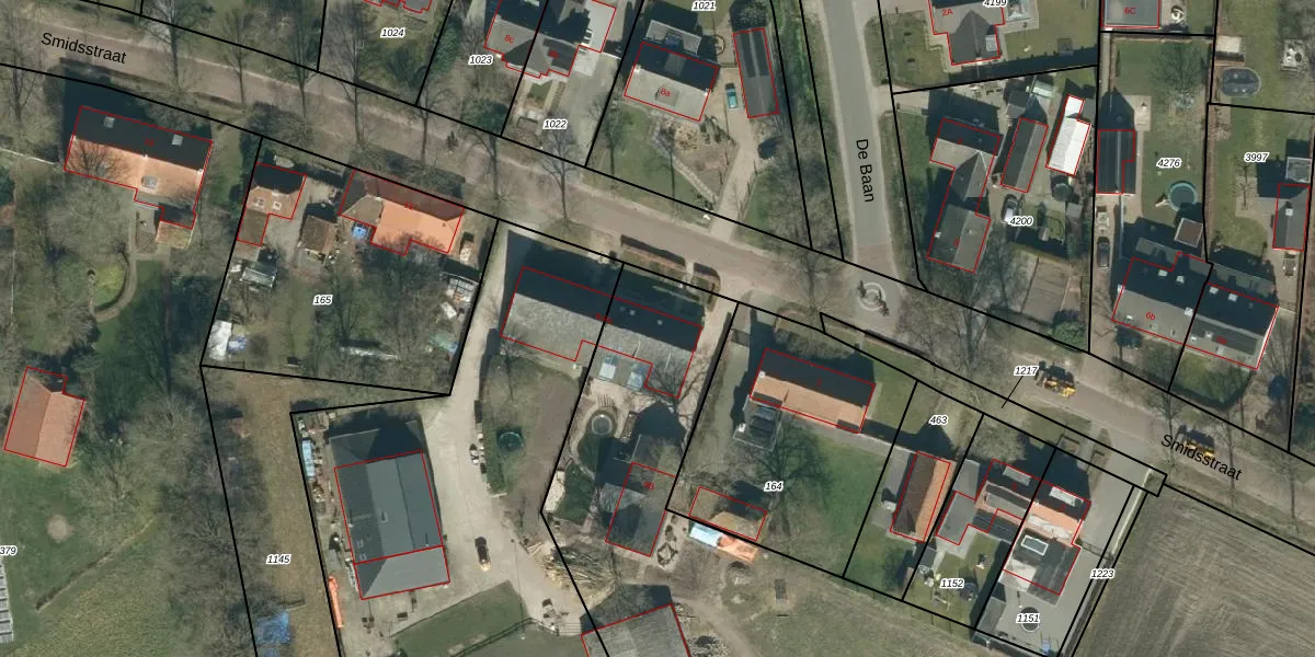 Het perceel waarop Smidsstraat 9 staat heeft een oppervlakte van 3795 m². Dit is een zeer groot perceel. De perceeloppervlakte wordt geregistreerd door het Kadaster. Gedetailleerde informatie over de maten van dit perceel kunt u vinden in het rapport Kadastrale kaart met maatvoering van Smidsstraat 9.