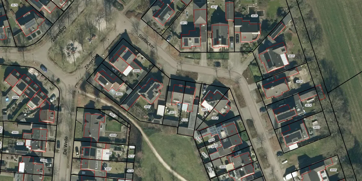 Gebruik de zoekbalk of klik op een perceel voor informatie over de adressen binnen dit perceel.