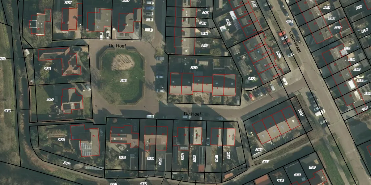 De Hoef 10 is gelegen op kadastraal perceel ZLW00G2478. Deze kadastrale aanduiding is uniek en wordt gebruikt door het Kadaster om eigendomsrechten en andere zakelijke rechten vast te leggen. Het perceel maakt onderdeel uit van de kadastrale gemeente Hooge en Lage Zwaluwe.