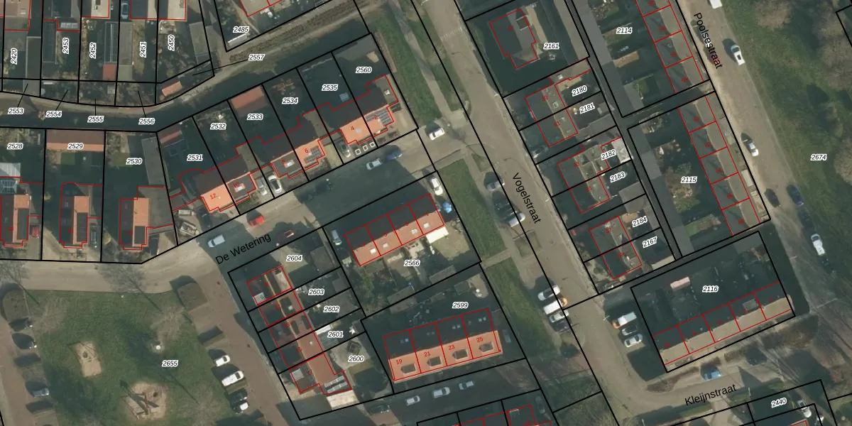 Het perceel waarop De Wetering 1 staat heeft een oppervlakte van 711 m². Dit is een groot perceel. De perceeloppervlakte wordt geregistreerd door het Kadaster. Gedetailleerde informatie over de maten van dit perceel kunt u vinden in het rapport Kadastrale kaart met maatvoering van De Wetering 1.