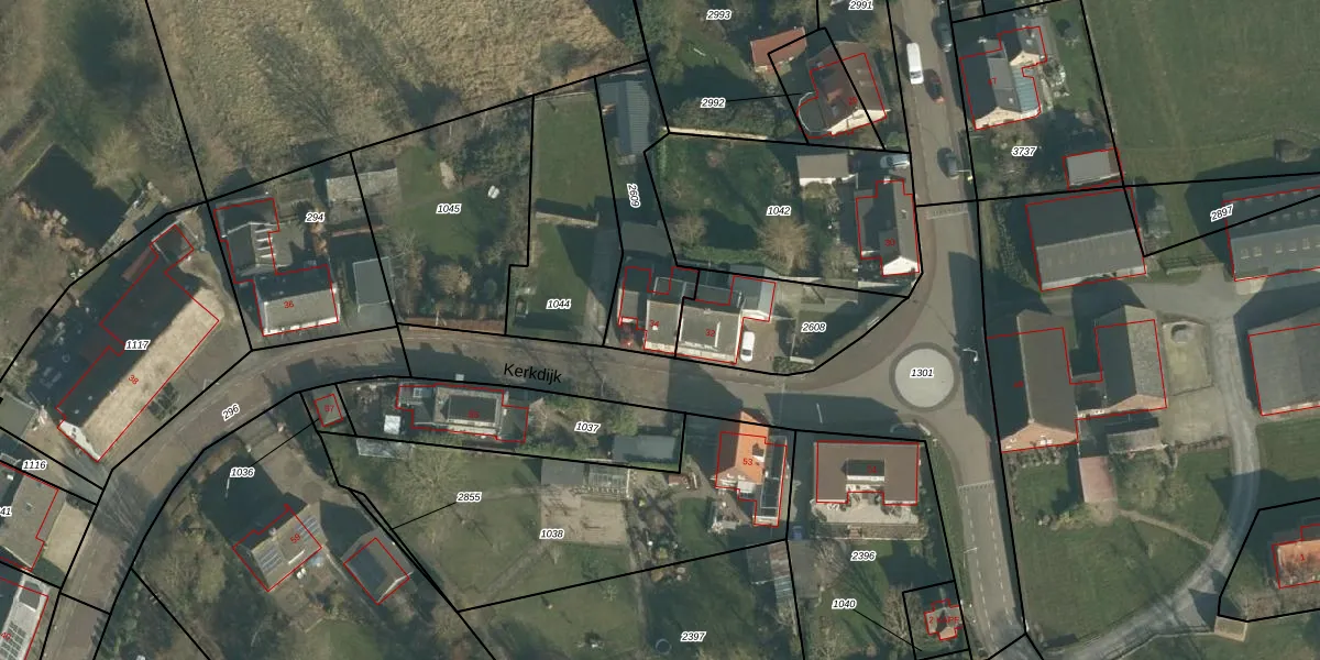 Het perceel waarop Kerkdijk 34 staat heeft een oppervlakte van 390 m². Dit is een groot perceel. De perceeloppervlakte wordt geregistreerd door het Kadaster. Gedetailleerde informatie over de maten van dit perceel kunt u vinden in het rapport Kadastrale kaart met maatvoering van Kerkdijk 34.