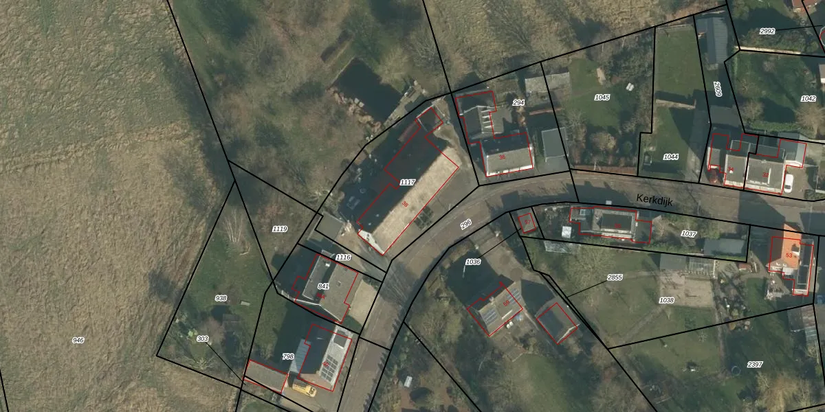 Het perceel waarop Kerkdijk 38 staat heeft een oppervlakte van 939 m². Dit is een groot perceel. De perceeloppervlakte wordt geregistreerd door het Kadaster. Gedetailleerde informatie over de maten van dit perceel kunt u vinden in het rapport Kadastrale kaart met maatvoering van Kerkdijk 38.