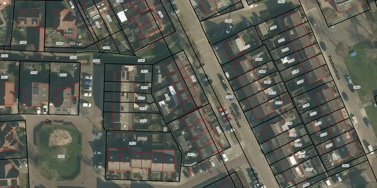 Vogelstraat 38 is gelegen op kadastraal perceel ZLW00G2449. Deze kadastrale aanduiding is uniek en wordt gebruikt door het Kadaster om eigendomsrechten en andere zakelijke rechten vast te leggen. Het perceel maakt onderdeel uit van de kadastrale gemeente Hooge en Lage Zwaluwe.