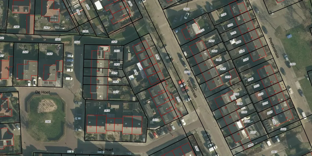 Het perceel waarop Vogelstraat 40 staat heeft een oppervlakte van 543 m². Dit is een groot perceel. De perceeloppervlakte wordt geregistreerd door het Kadaster. Gedetailleerde informatie over de maten van dit perceel kunt u vinden in het rapport Kadastrale kaart met maatvoering van Vogelstraat 40.