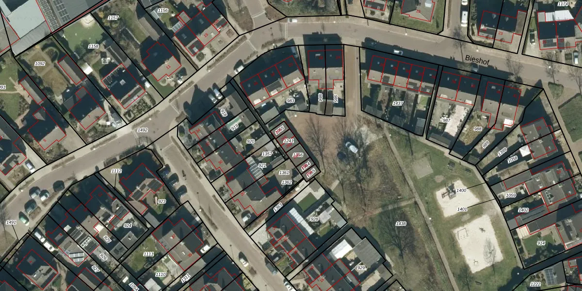 Het perceel waarop Bieshof 26-D staat heeft een oppervlakte van 36 m². Dit is een klein perceel. De perceeloppervlakte wordt geregistreerd door het Kadaster. Gedetailleerde informatie over de maten van dit perceel kunt u vinden in het rapport Kadastrale kaart met maatvoering van Bieshof 26-D.