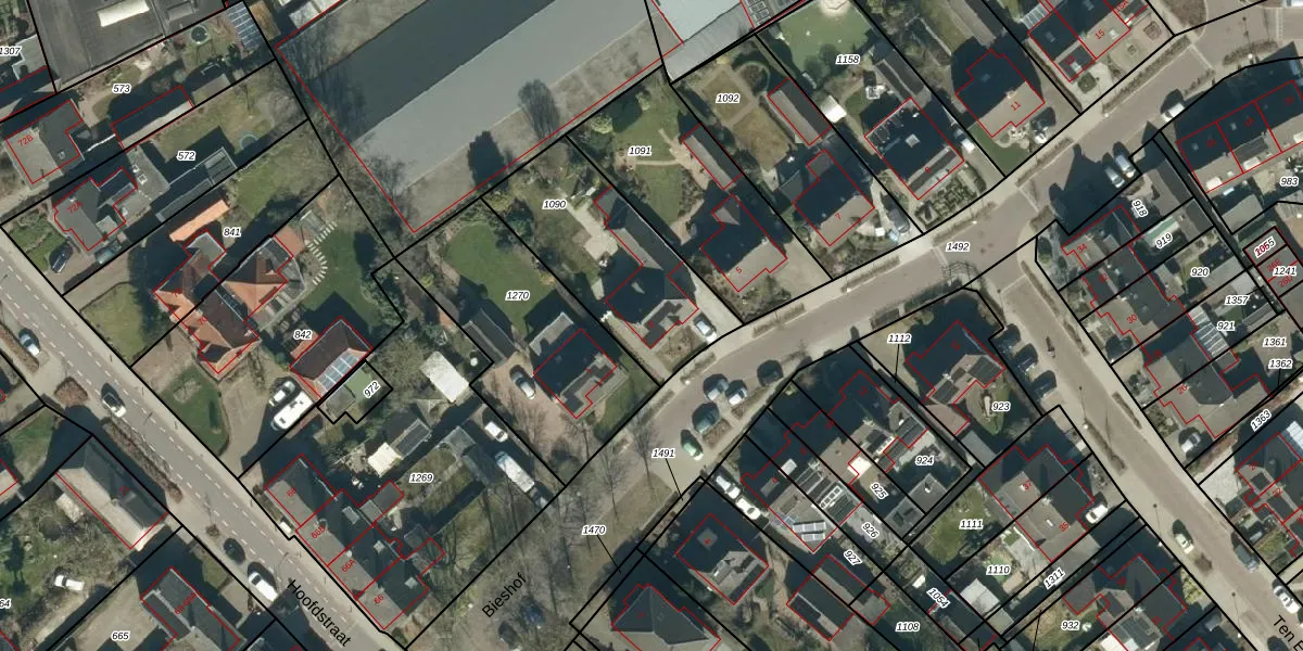 Het perceel waarop Bieshof 3 staat heeft een oppervlakte van 633 m². Dit is een groot perceel. De perceeloppervlakte wordt geregistreerd door het Kadaster. Gedetailleerde informatie over de maten van dit perceel kunt u vinden in het rapport Kadastrale kaart met maatvoering van Bieshof 3.