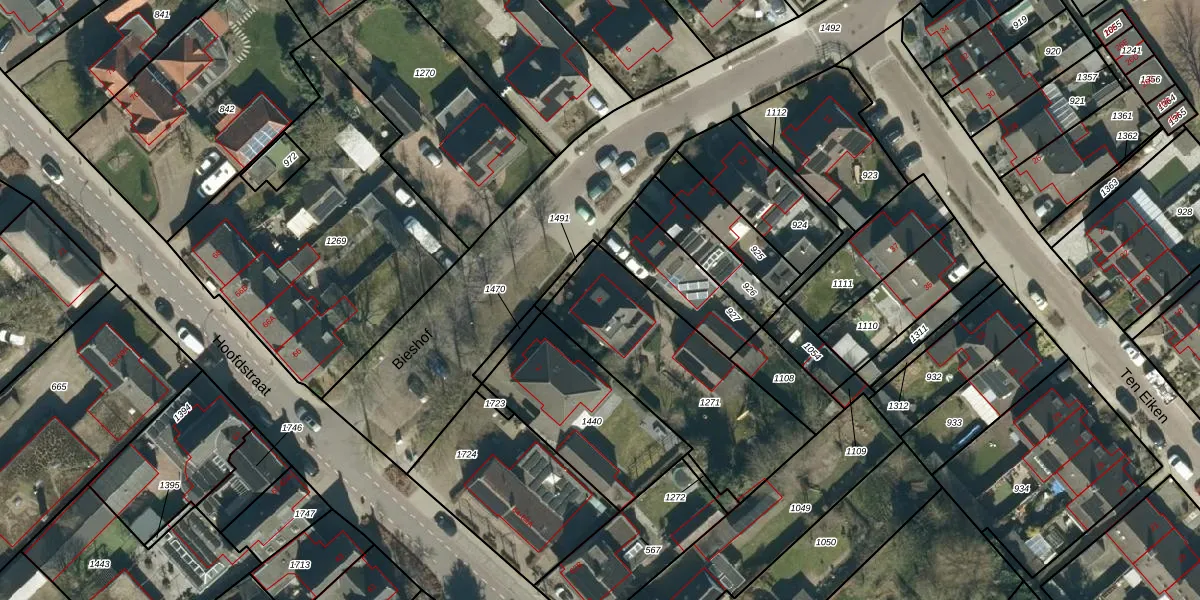 Het perceel waarop Bieshof 4 staat heeft een oppervlakte van 737 m². Dit is een groot perceel. De perceeloppervlakte wordt geregistreerd door het Kadaster. Gedetailleerde informatie over de maten van dit perceel kunt u vinden in het rapport Kadastrale kaart met maatvoering van Bieshof 4.