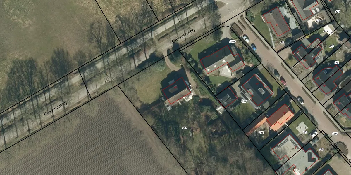 Het perceel waarop Casterseweg 19 staat heeft een oppervlakte van 4324 m². Dit is een zeer groot perceel. De perceeloppervlakte wordt geregistreerd door het Kadaster. Gedetailleerde informatie over de maten van dit perceel kunt u vinden in het rapport Kadastrale kaart met maatvoering van Casterseweg 19.