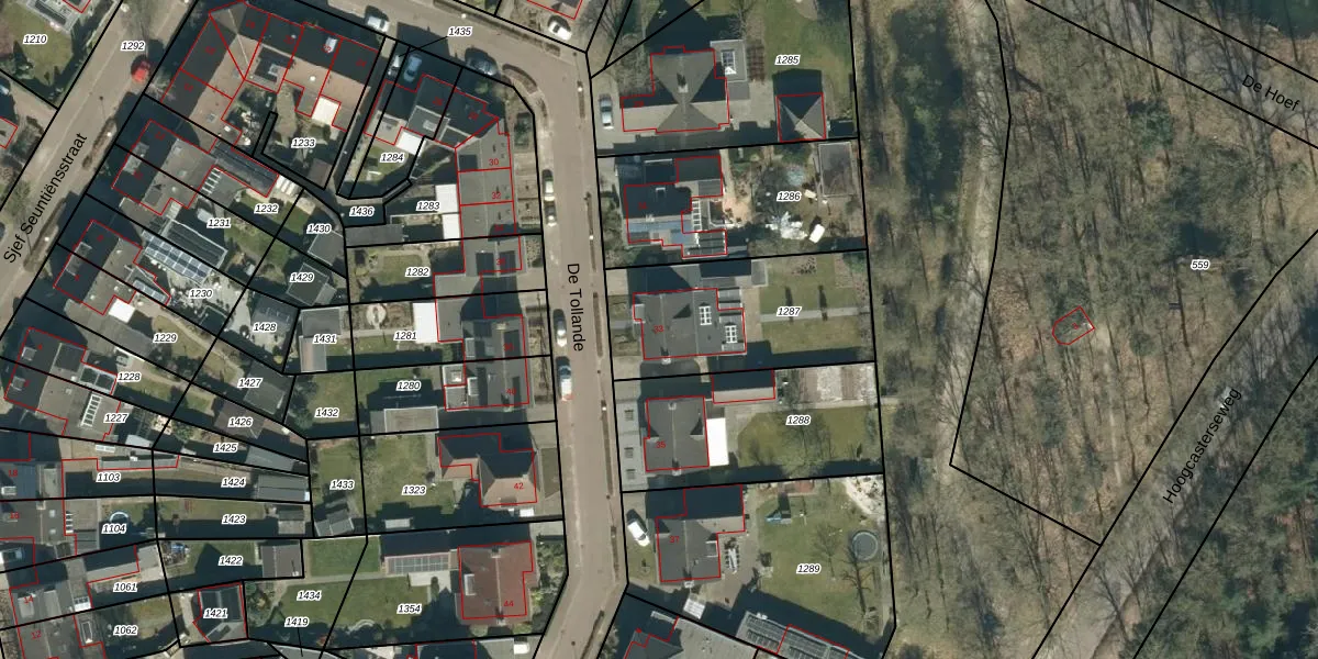 De Tollande 33 is gelegen op kadastraal perceel HGL04E1287. Deze kadastrale aanduiding is uniek en wordt gebruikt door het Kadaster om eigendomsrechten en andere zakelijke rechten vast te leggen. Het perceel maakt onderdeel uit van de kadastrale gemeente Hoogeloon.