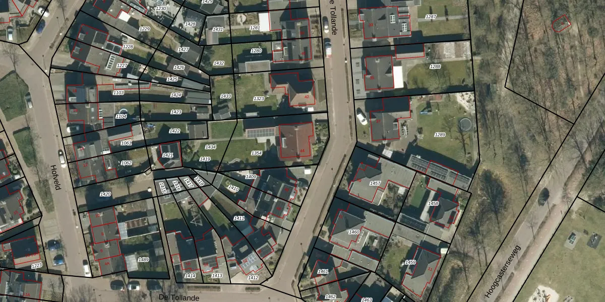 De Tollande 44 is gelegen op kadastraal perceel HGL04E1354. Deze kadastrale aanduiding is uniek en wordt gebruikt door het Kadaster om eigendomsrechten en andere zakelijke rechten vast te leggen. Het perceel maakt onderdeel uit van de kadastrale gemeente Hoogeloon.