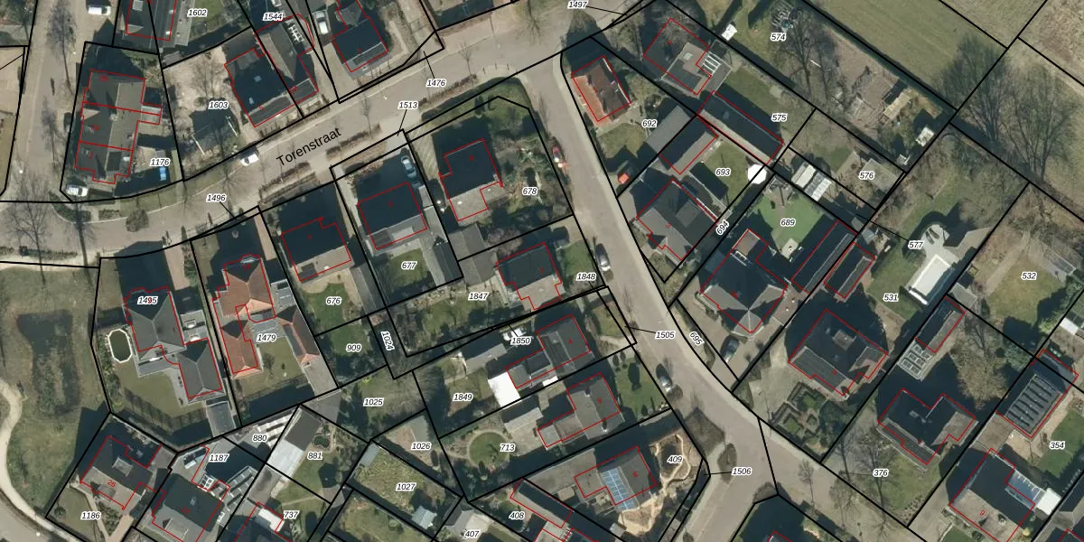 Gebruik de zoekbalk of klik op een perceel voor informatie over de adressen binnen dit perceel.