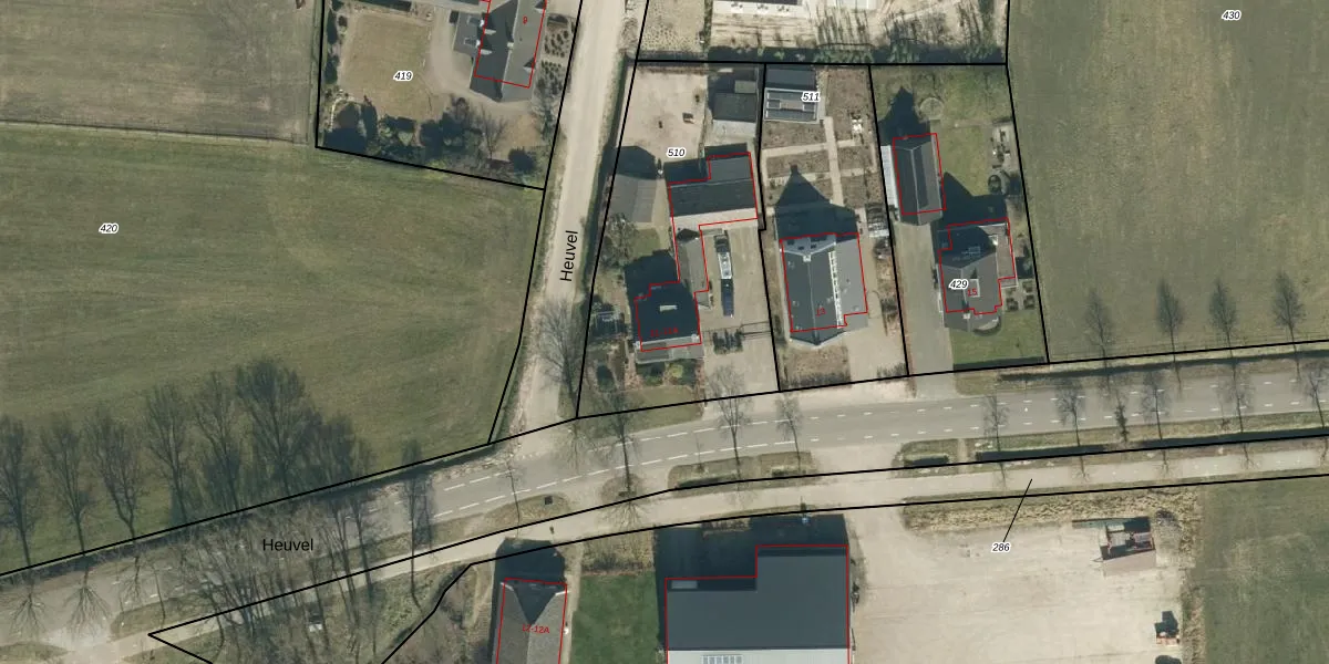 Heuvel 11 is gelegen op kadastraal perceel HGL04M510. Deze kadastrale aanduiding is uniek en wordt gebruikt door het Kadaster om eigendomsrechten en andere zakelijke rechten vast te leggen. Het perceel maakt onderdeel uit van de kadastrale gemeente Hoogeloon.