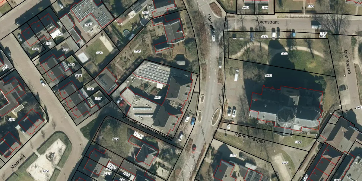 Het adres is gelegen op perceel 1657 in de sectie E en de kadastrale gemeente Hoogeloon. De kadastrale aanduiding is aldus HGL04-E-1657. De gemiddelde perceelgrootte in Hoogeloon is 5343,81 m². Dit perceel is kleiner: de perceeloppervlakte bedraagt 1286 m². Het kleinste perceel in de kadastrale gemeente is 0 m² groot. De grootste perceeloppervlakte is 4,36 km². Op het perceel zijn 21 adressen aanwezig. In de Basisregistratie Kadaster (BRK) werden de grenzen van het perceel geregistreerd op 12-02-2013.