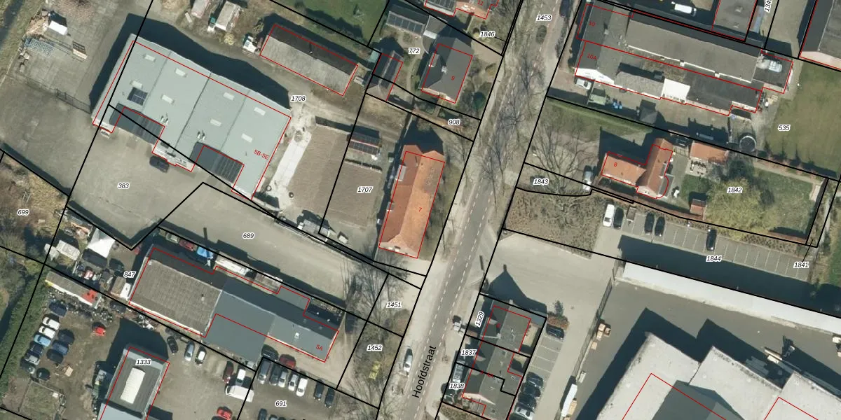 Het perceel waarop Hoofdstraat 7 staat heeft een oppervlakte van 990 m². Dit is een groot perceel. De perceeloppervlakte wordt geregistreerd door het Kadaster. Gedetailleerde informatie over de maten van dit perceel kunt u vinden in het rapport Kadastrale kaart met maatvoering van Hoofdstraat 7.