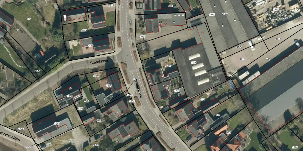 Het perceel waarop Hoofdstraat 74-B staat heeft een oppervlakte van 383 m². Dit is een groot perceel. De perceeloppervlakte wordt geregistreerd door het Kadaster. Gedetailleerde informatie over de maten van dit perceel kunt u vinden in het rapport Kadastrale kaart met maatvoering van Hoofdstraat 74-B.
