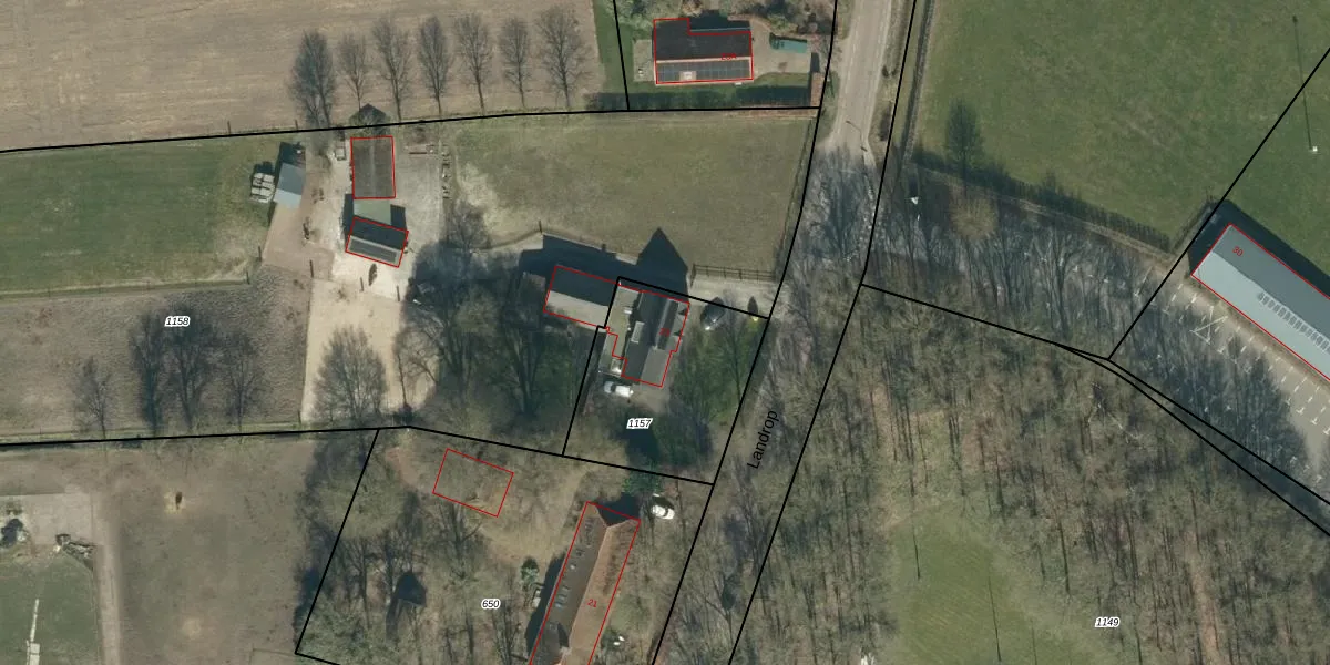 Het perceel waarop Landrop 23 staat heeft een oppervlakte van 640 m². Dit is een groot perceel. De perceeloppervlakte wordt geregistreerd door het Kadaster. Gedetailleerde informatie over de maten van dit perceel kunt u vinden in het rapport Kadastrale kaart met maatvoering van Landrop 23.