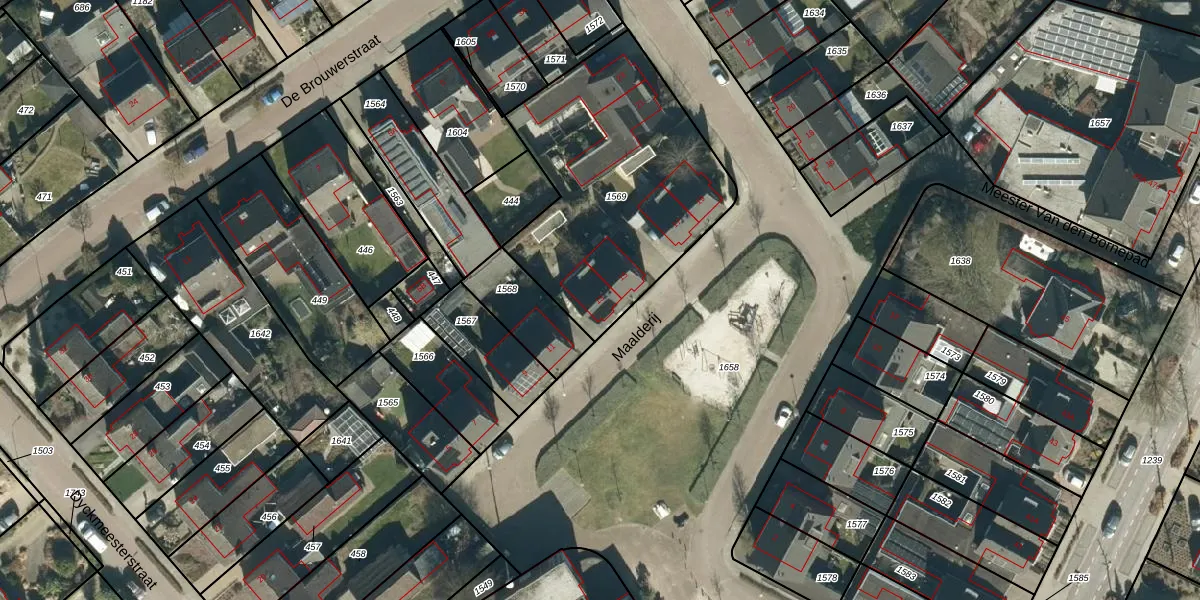 Maalderij 13 is gelegen op kadastraal perceel HGL04E1569. Deze kadastrale aanduiding is uniek en wordt gebruikt door het Kadaster om eigendomsrechten en andere zakelijke rechten vast te leggen. Het perceel maakt onderdeel uit van de kadastrale gemeente Hoogeloon.