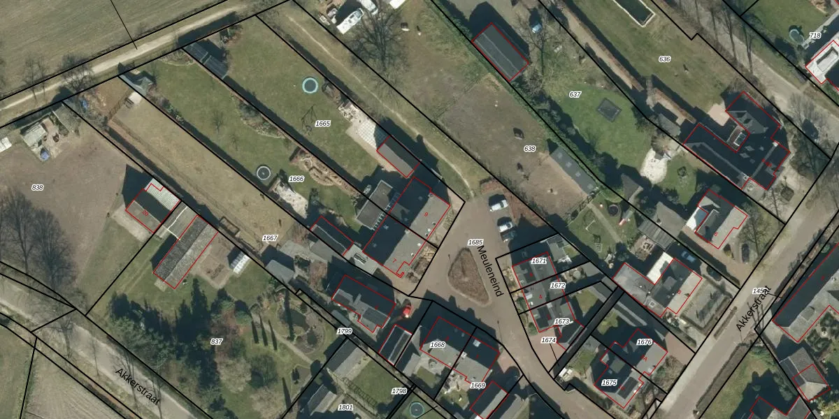 Meuleneind 9 is gelegen op kadastraal perceel HGL04E1665. Deze kadastrale aanduiding is uniek en wordt gebruikt door het Kadaster om eigendomsrechten en andere zakelijke rechten vast te leggen. Het perceel maakt onderdeel uit van de kadastrale gemeente Hoogeloon.