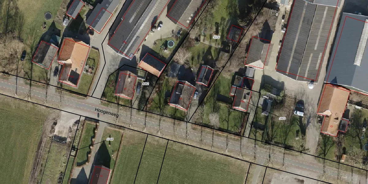 Het perceel waarop Hoogenweg 20 staat heeft een oppervlakte van 2275 m². Dit is een zeer groot perceel. De perceeloppervlakte wordt geregistreerd door het Kadaster. Gedetailleerde informatie over de maten van dit perceel kunt u vinden in het rapport Kadastrale kaart met maatvoering van Hoogenweg 20.