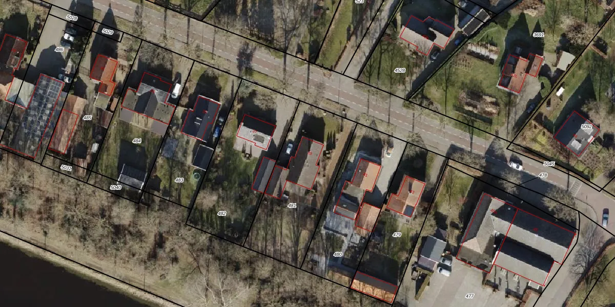 Gebruik de zoekbalk of klik op een perceel voor informatie over de adressen binnen dit perceel.